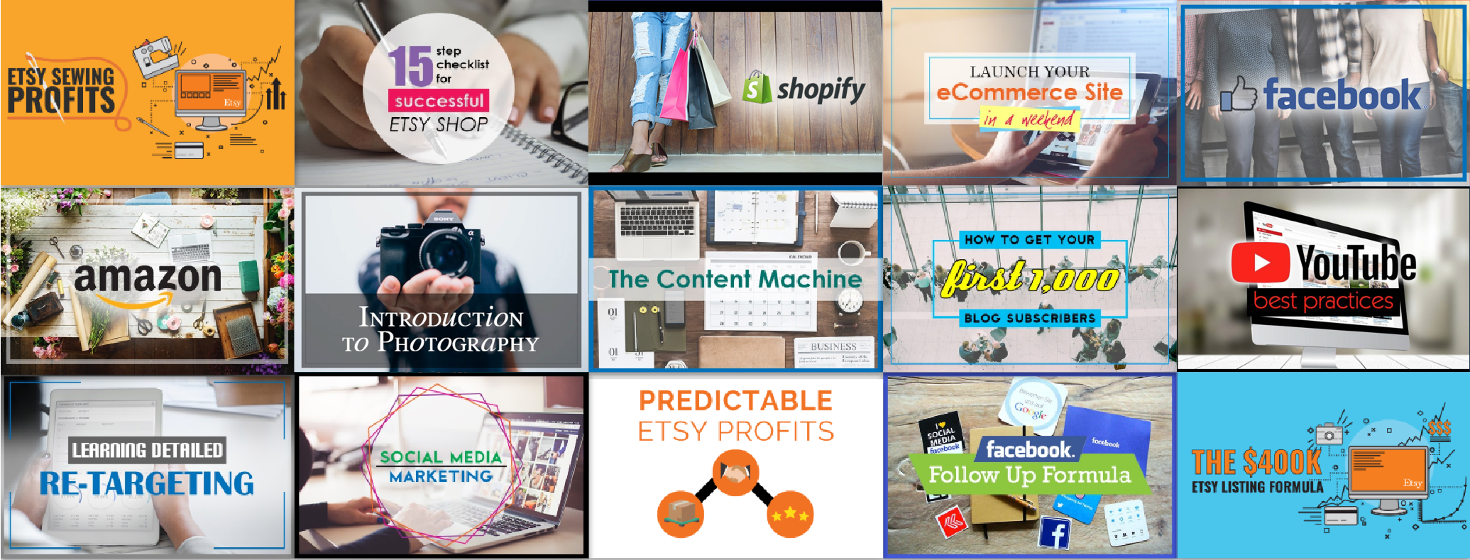 Get access to over 15 other courses where we teach you everything you need to know in order to run your own online business! Need help with social media, or bringing in traffic, or setting up shop? We have a course for that, and as an eShop Marketer Pro member, you get access to that! Learn from experienced Etsy sellers, professional social media and marketing gurus, and experts in anything you need to set up your shop!
